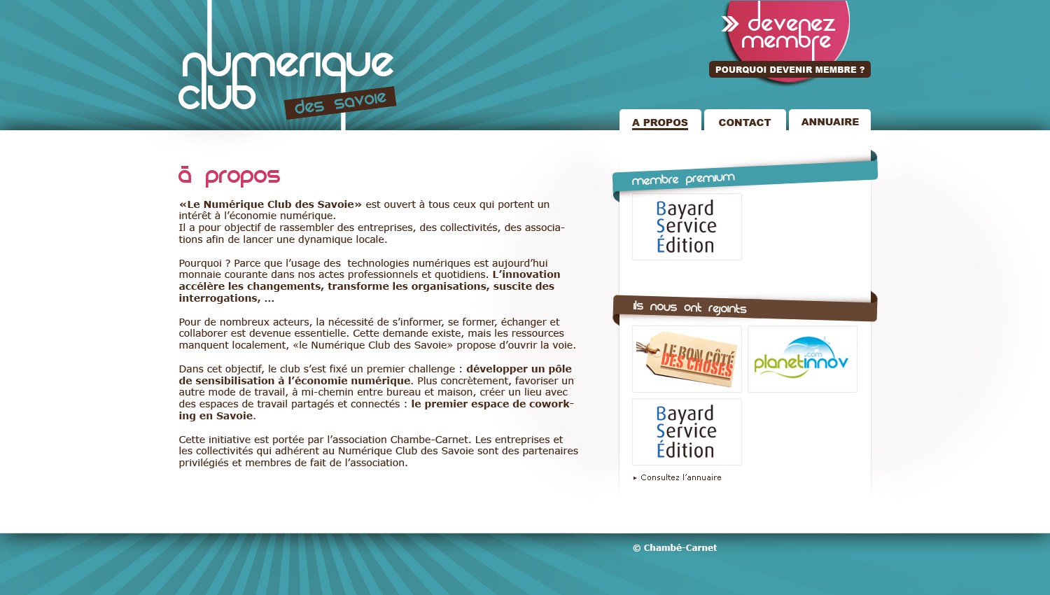 Hello, Marlène a bossé sur une maquette pour le numérique club. Vos retours sont les bienvenus. (les hooo et les haaaa, aussi) -- Jean-Sébastien Mansart Président de l'association Chambé-Carnet http://chambe-carnet.com http://facebook.com/chambecarnet http://twitter.com/chambecarnet
